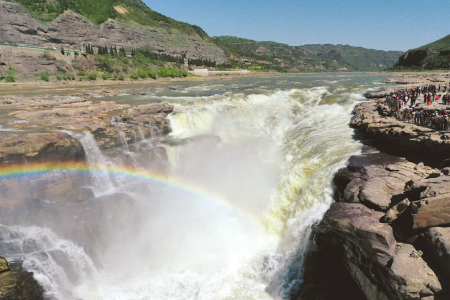 洶涌奔流的黃河水跌入龍槽,白浪翻滾,聲若雷鳴。一進(jìn)入黃河壺口瀑布旅游區(qū),來自河北的游客王鑫就被“清流飛瀑”奇特景觀吸引。“太震撼了!奔騰向前百折不回的黃河,讓人頓生強(qiáng)烈的民族自豪感?!彼B連贊嘆。