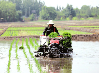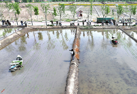 5月28日,太原市晉源區(qū)晉祠水稻插秧節(jié)在稻田公園舉行?;顒?dòng)現(xiàn)場(chǎng),機(jī)器轟鳴、水波蕩漾,自動(dòng)化插秧機(jī)勻速前進(jìn),水田里留下一簇簇新綠。卷褲腳、戴草帽、踏稻田、插秧苗、踩泥巴、捉魚蝦……一群群研學(xué)的孩子分批下田,感受手工插秧的樂趣,細(xì)嗅農(nóng)耕勞作的氣息。田埂上圍觀群眾的加油聲、喝彩聲不絕于耳,現(xiàn)場(chǎng)一片熱火朝天。