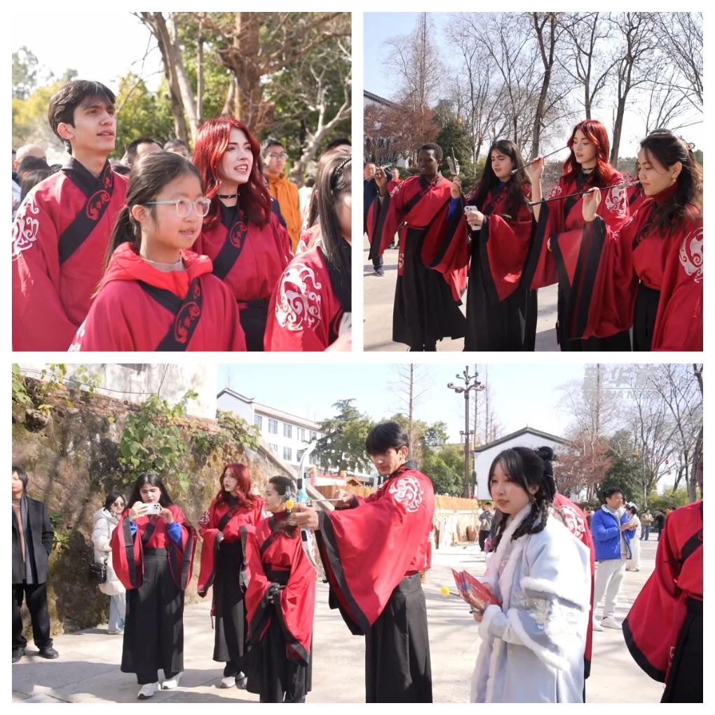 春節(jié)期間,來自浙江師范大學(xué)的10多位留學(xué)生在浙江金華參加了“我在中國過春節(jié)”的體驗項目。他們身著漢服,到金華府文廟,向孔子像行拜師禮,并在新年祈福牌上書寫新年愿景。