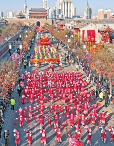 2月10日,農(nóng)歷正月十三,大同古城的民俗社火巡游表演盛大開啟。撓擱、旱船、花傘及人偶互動(dòng)等精彩節(jié)目紛紛亮相,為市民和游客帶來(lái)一場(chǎng)視覺(jué)盛宴。劉通 張占兵攝