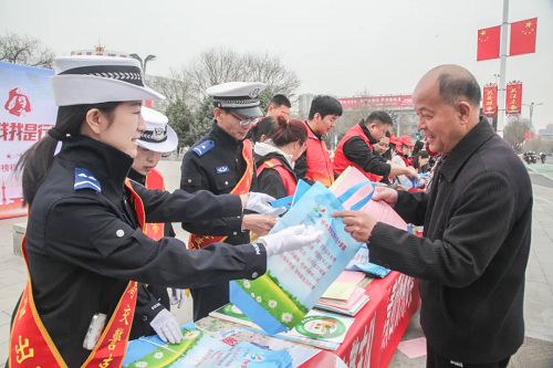 活動現(xiàn)場,交警支隊(duì)宣傳科、古城大隊(duì)七一崗的交警們身披綬帶,與各單位的志愿者們一起設(shè)立宣傳臺,擺放交通事故警示教育宣傳展板,為過往群眾提供交管業(yè)務(wù)咨詢、開展電動自行車上牌上戶、騎行電動車要佩戴安全頭盔、駕車拒絕酒駕等普法宣傳,通過發(fā)放交通安全宣傳資料,向群眾講解安全過馬路、遠(yuǎn)離貨車盲區(qū)、“一盔一帶”等交通安全常識,倡導(dǎo)群眾自覺抵制交通陋習(xí),讓“走文明路、行文明車、做文明人”成為自覺和安全出行的前提。