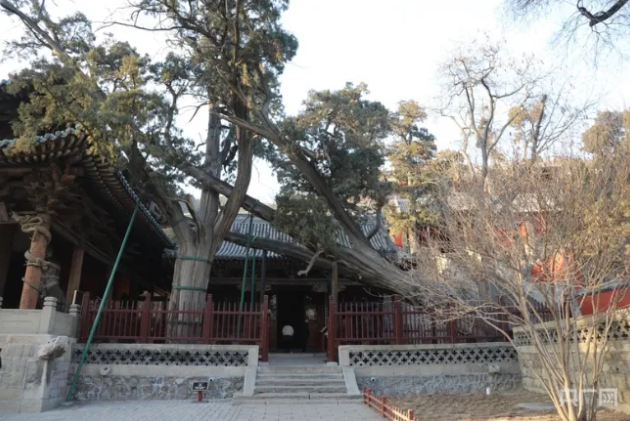 宋代彩塑的杰出代表——侍女像(央廣網(wǎng)記者 郎麒 攝) 三千年晉祠的“見證者”——周柏。周柏長于圣母殿右側(cè),18米長的周柏向南傾斜生長,被另一株古柏所支撐,樹葉披覆在圣母殿頂,樹干粗壯,得幾人才能合抱,像一條橫臥的巨龍,因此有“臥龍柏”之美譽。經(jīng)科學(xué)測定,此樹已有二千九百九十多歲。在晉祠,樹齡在千年以上的蒼松、翠柏、古槐等尚存二十余株,它們和古柏一起見證著晉祠的悠悠歷史。