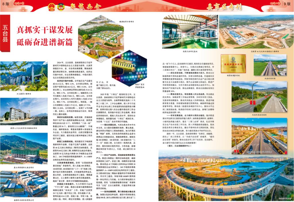 承載能力有效提升。大力開(kāi)展學(xué)習(xí)運(yùn)用“千萬(wàn)工程”經(jīng)驗(yàn)、推進(jìn)以縣城為重要載體的城鎮(zhèn)化建設(shè)“雙試點(diǎn)”工作,實(shí)施了總投資20.7億元的一攬子民生工程,涉及道路17條、管網(wǎng)改造63.6公里、醫(yī)院2座、學(xué)校3座、養(yǎng)老院1座。同時(shí),順應(yīng)百姓期盼,投入新能源車17臺(tái),開(kāi)通了城區(qū)公交,極大地方便了群眾出行。2025年是“十四五”規(guī)劃收官之年。五臺(tái)縣委、縣政府將以習(xí)近平新時(shí)代中國(guó)特色社會(huì)主義思想為指導(dǎo),全面貫徹落實(shí)黨的二十大和二十屆二中、三中全會(huì)精神,深入學(xué)習(xí)習(xí)近平總書記對(duì)山西工作的重要講話重要指示精神,按照市委五屆八次全會(huì)暨市委經(jīng)濟(jì)工作會(huì)議部署要求,堅(jiān)持穩(wěn)中求進(jìn)工作總基調(diào),推動(dòng)經(jīng)濟(jì)持續(xù)向好,提高人民生活水平,保持社會(huì)和諧穩(wěn)定,高質(zhì)量完成“十四五”規(guī)劃任務(wù),為實(shí)現(xiàn)“十五五”良好開(kāi)局打牢基礎(chǔ)。