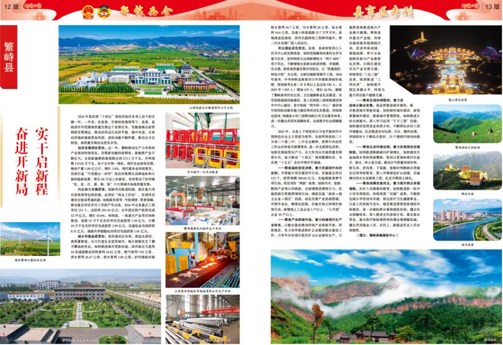 經(jīng)濟(jì)發(fā)展質(zhì)態(tài)更優(yōu)。這一年,繁峙推動(dòng)生產(chǎn)力布局和產(chǎn)業(yè)規(guī)劃持續(xù)優(yōu)化,發(fā)展新動(dòng)能持續(xù)釋放。新能源產(chǎn)業(yè)不斷壯大。全縣新能源核準(zhǔn)規(guī)模達(dá)到271.1萬(wàn)千瓦,并網(wǎng)規(guī)模115.02萬(wàn)千瓦,處于全市第一梯隊(duì)?,F(xiàn)代農(nóng)業(yè)高效發(fā)展,糧食產(chǎn)量1.89億公斤,增長(zhǎng)3.8%?,F(xiàn)代服務(wù)業(yè)持續(xù)復(fù)蘇。持續(xù)打造“不夜憨山·砂河”夜經(jīng)濟(jì)集聚區(qū)品牌地標(biāo)和文旅體驗(yàn)新場(chǎng)景,吸引86萬(wàn)余人次游客,有效帶動(dòng)了砂河鎮(zhèn)“吃、住、行、游、購(gòu)、娛”六大領(lǐng)域市場(chǎng)高質(zhì)量發(fā)展。
