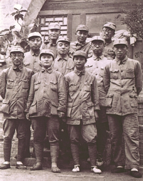 圖10 1938年1月,八路軍第一一五師主力開辟晉西南抗日根據(jù)地。圖為羅榮桓(二排左三)、楊尚昆(二排左二)等在孝義。