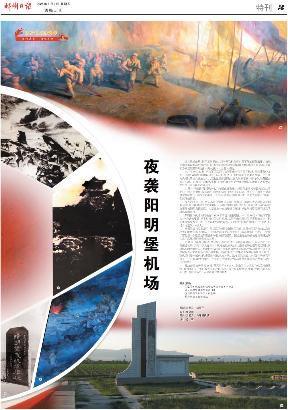 陽明堡飛機(jī)場為閻錫山于1935年所建,設(shè)施簡陋。1937年10月1日被日軍侵占,作為襲擊崞縣、原平和忻口的臨時機(jī)場,是日軍進(jìn)攻忻口的軍事基地之一。機(jī)場夜里停放24架飛機(jī),白天輪番到前線轟炸。陽明堡駐日軍香月師團(tuán)一個聯(lián)隊,機(jī)場有守衛(wèi)隊100多人。