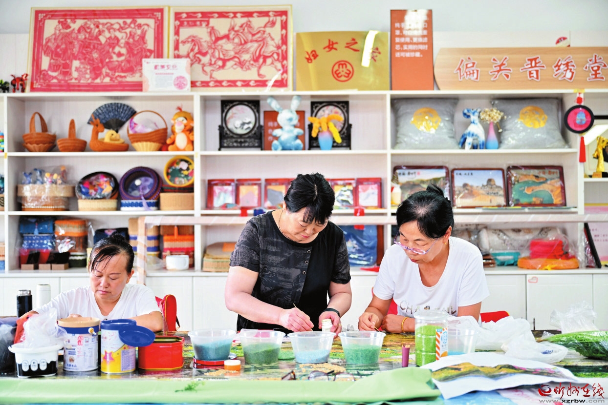 2019年,在偏關縣政府的支持下,郝果葉辦起了晉繡堂。從基礎針法,到設計圖案、把控品質,她手把手帶徒傳藝。馬梁村的周雪琴是最早來學的一批人中的一個,家中有個聾啞兒子需要照顧,日子過得緊巴巴。初學時,粗糙的手指捏不住繡花針,如今靠刺繡月入近3000元,“比種地輕快,還能守著娃,這雙手讓她有了底氣?!蓖ㄟ^開展專業(yè)培訓,郝果葉幫助300多名婦女學習傳統(tǒng)手藝。晉繡堂成了她們“第二個家”,在這里,針尖挑起的不只是絲線,還有挺直的腰桿和亮堂的明天。